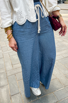 The Pinstriped Tie Waist Wide Leg Pants bring effortless style and comfort with their relaxed, flowy silhouette. Designed with a soft pinstriped fabric and an adjustable rope-style drawstring waist, they’re perfect for creating an easy yet polished look. Side pockets add functionality, making them a versatile staple for everything from weekend strolls to casual office days.