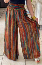 Introducing our NEW Smocked Waistband Maxi Pants! Designed with a smocked waistband, these pants provide a comfortable and adjustable fit for all body types. Perfect for any occasion, these pants offer ultimate versatility and style. Experience the benefits of effortless elegance with our Maxi Pants. This pair of pants feature side pockets, elastic waistband, loose fit / wide leg style.