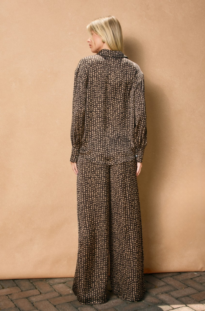 The Downtown Wide Leg Pants are designed in a lightweight, flowy fabric with a relaxed wide-leg silhouette for effortless movement and comfort. Featuring an adjustable drawstring waist and easy pull-on fit, they are made to pair perfectly with the Downtown Relax Button Top while also styling beautifully on their own. For customers with wider hips, we recommend sizing up for the most comfortable and flattering fit. It features adjustable drawstring and side pockets.