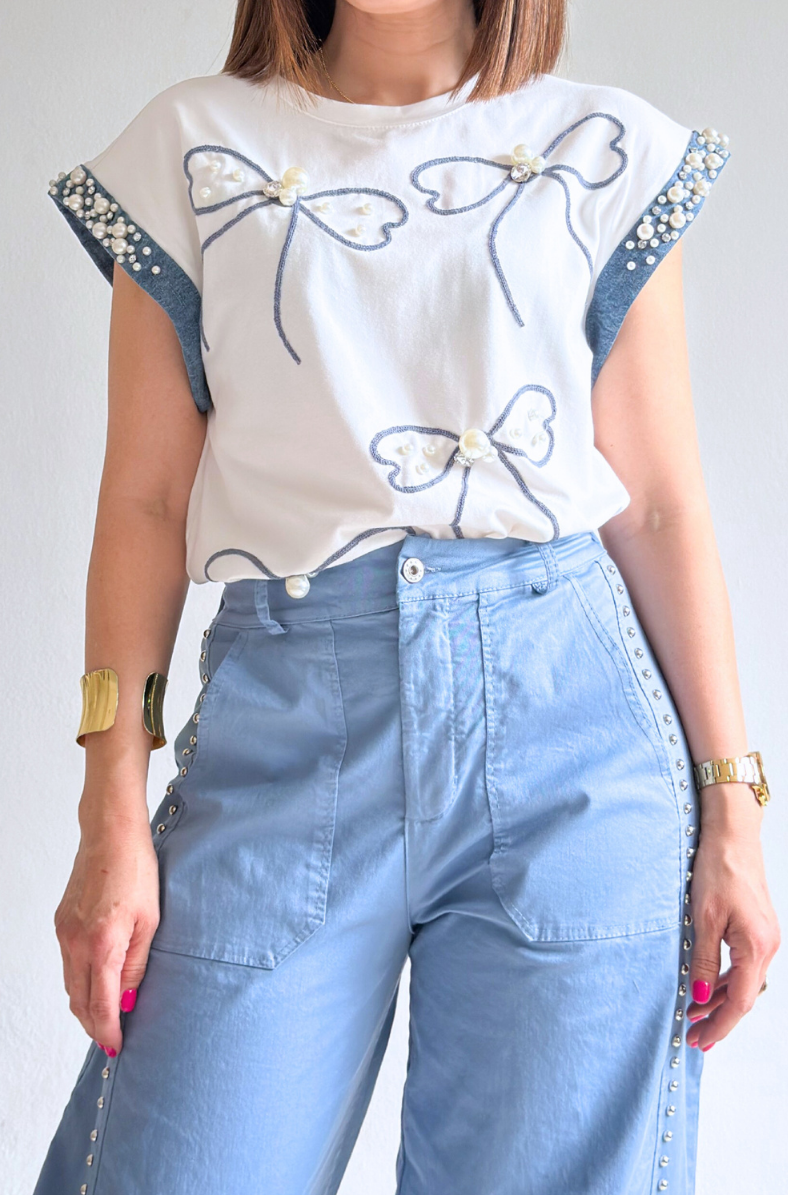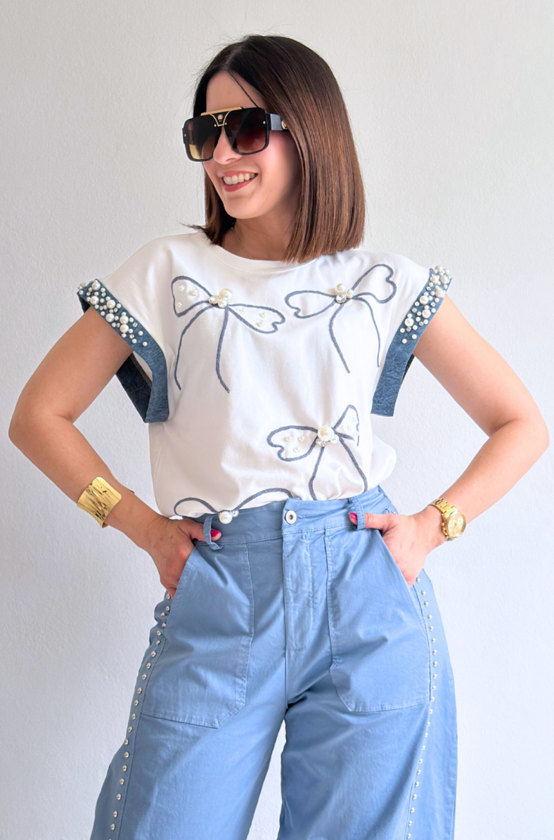 Embroidered Bow Top