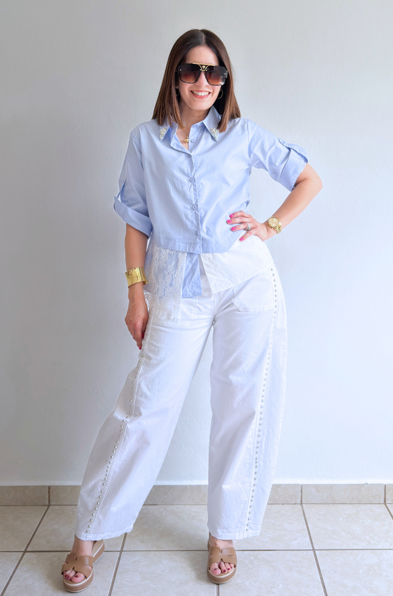 - Pearl embellishment on collar