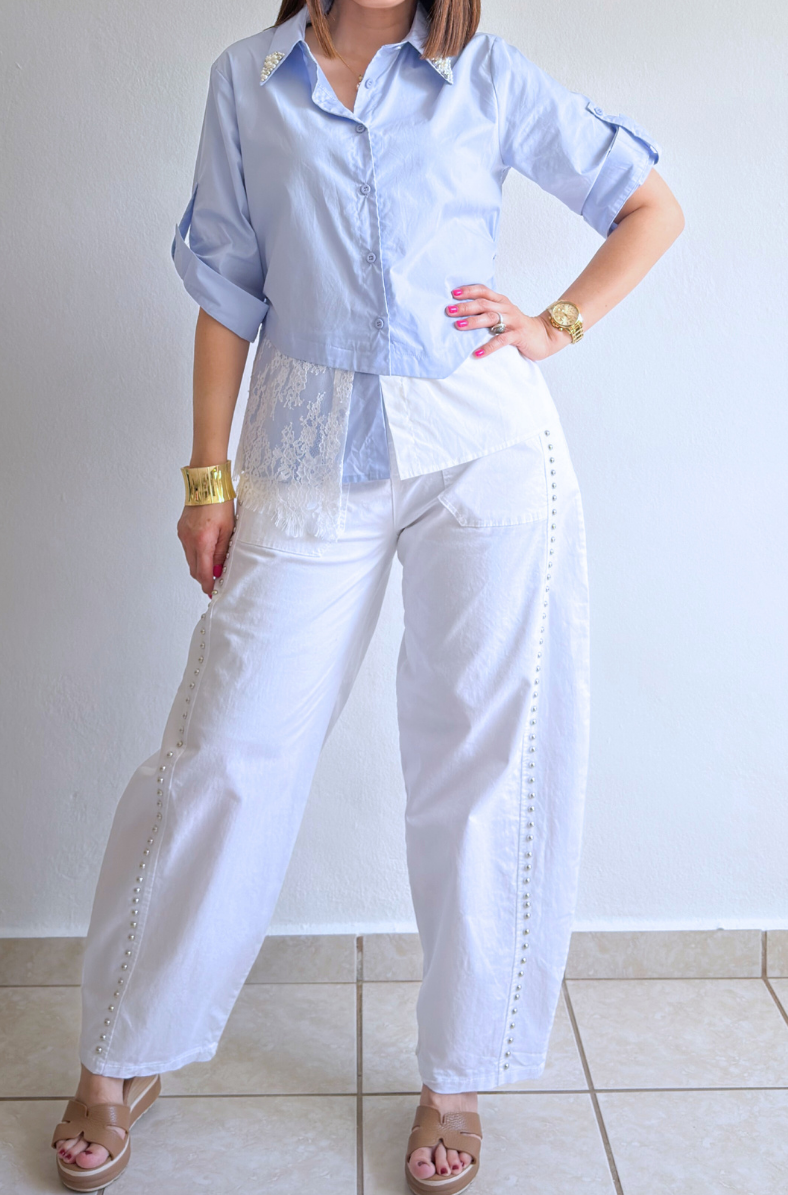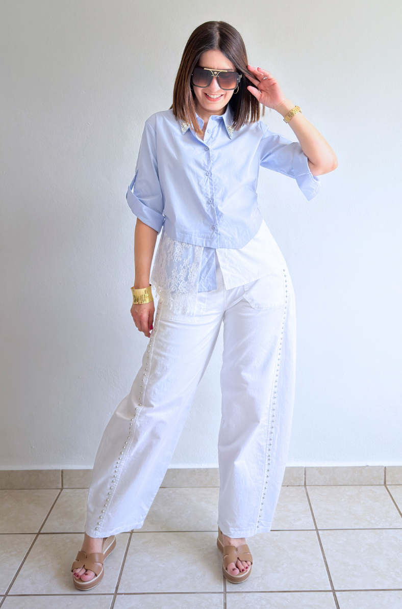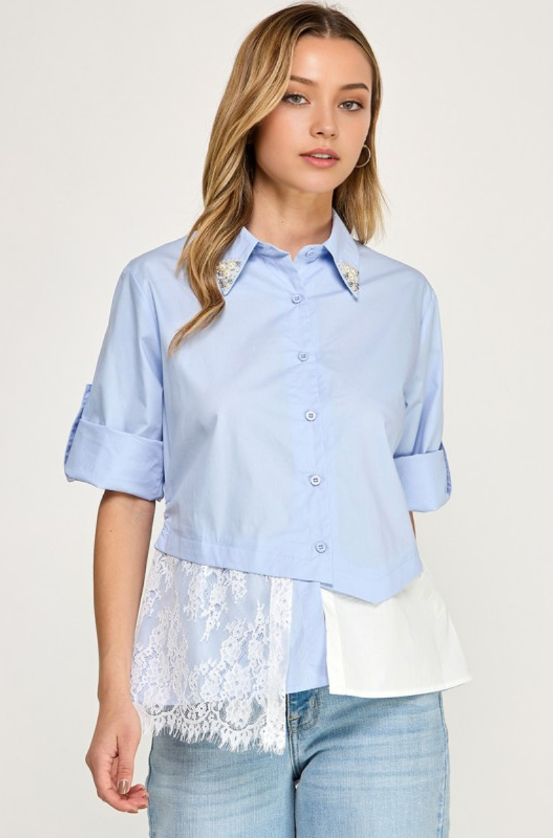 Layered Lace Hem Button Down Top