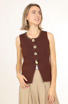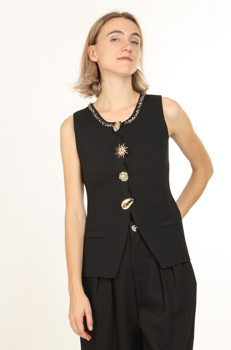 Couture Rhinestones & Gold Buttons Top - THREE COLORS - ONE SIZE