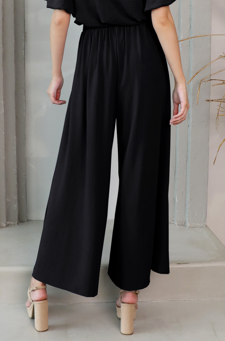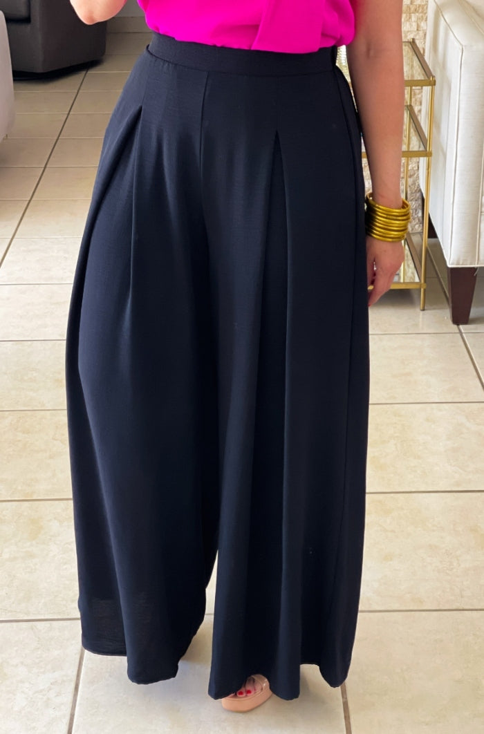 Stay on trend with our new Pleated Wide Leg Pants! These pants feature a modern pleated design and a wide leg cut, perfect for creating a sophisticated and stylish look. Elevate your wardrobe with these fashionable pants! These pants feature an elastic waistband, pleated design and a loose fit.