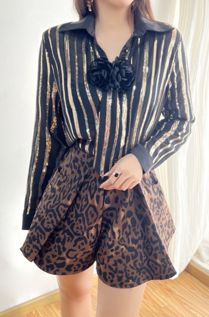 This Textured Sequins & Stripes Top is the perfect addition to your wardrobe. The textured sequins add a touch of glamour, while the stripes provide a classic and versatile look. Get ready to turn heads with this new addition to your collection! This top features long sleeves, button down style and subtle see through fabric.