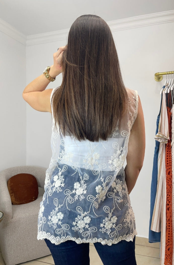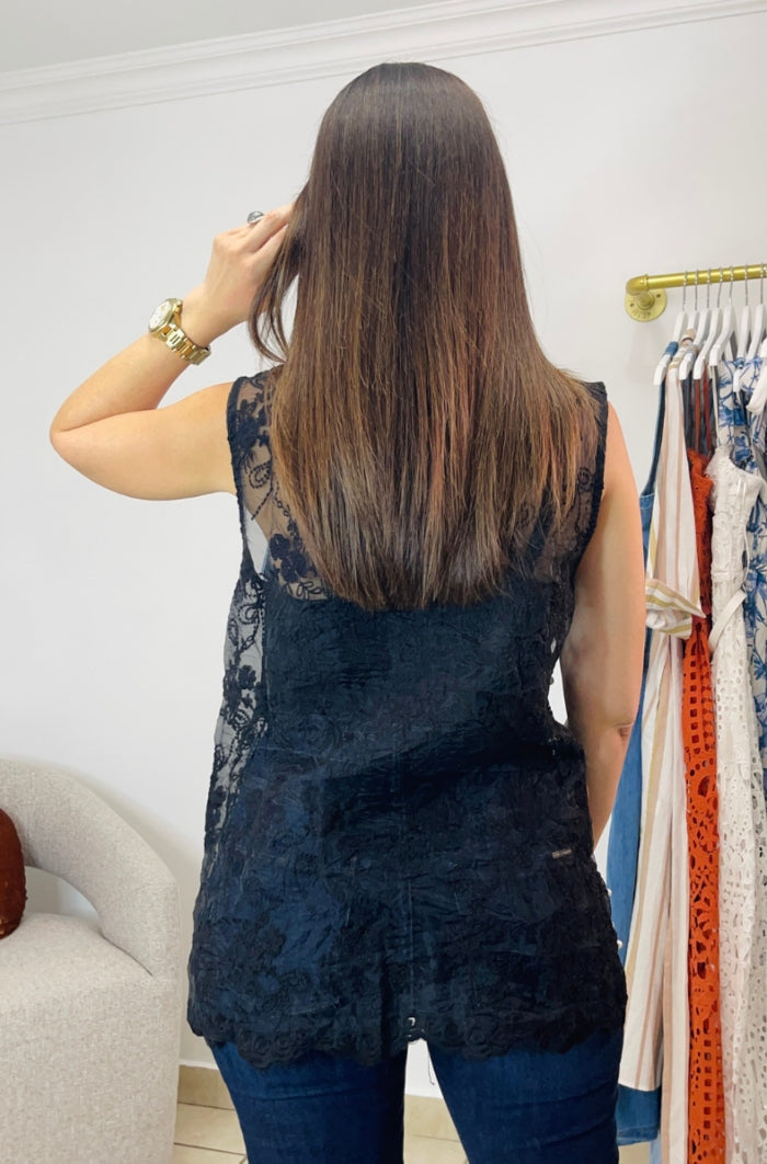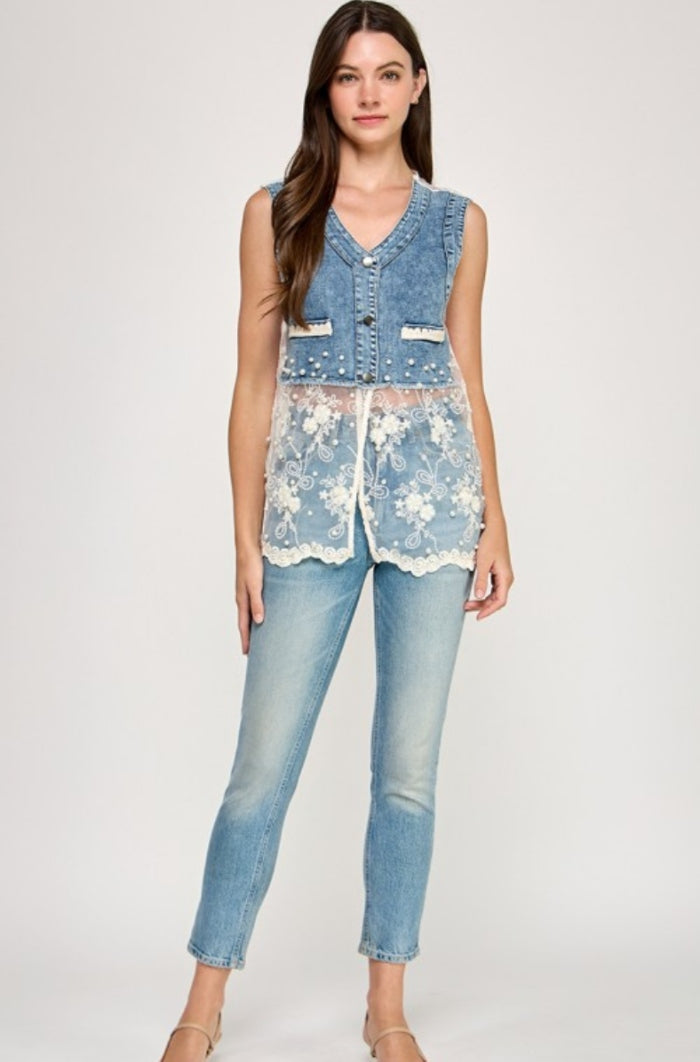 Sleeveless Denim & Lace Top - TWO COLORS