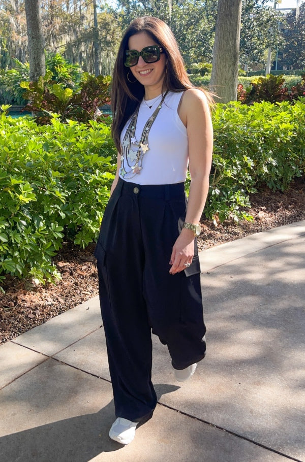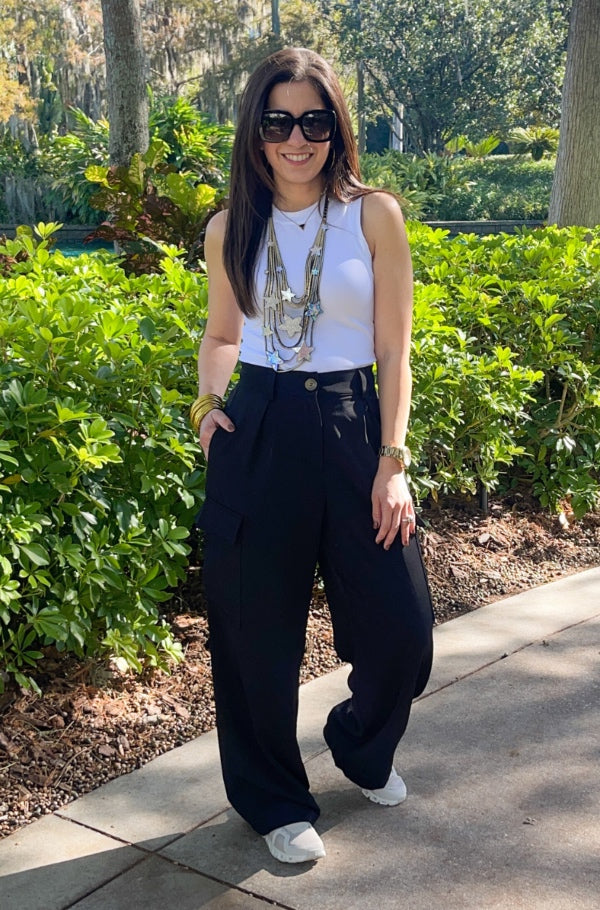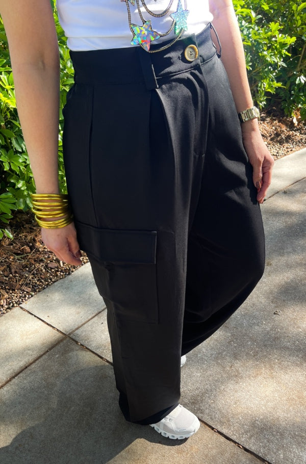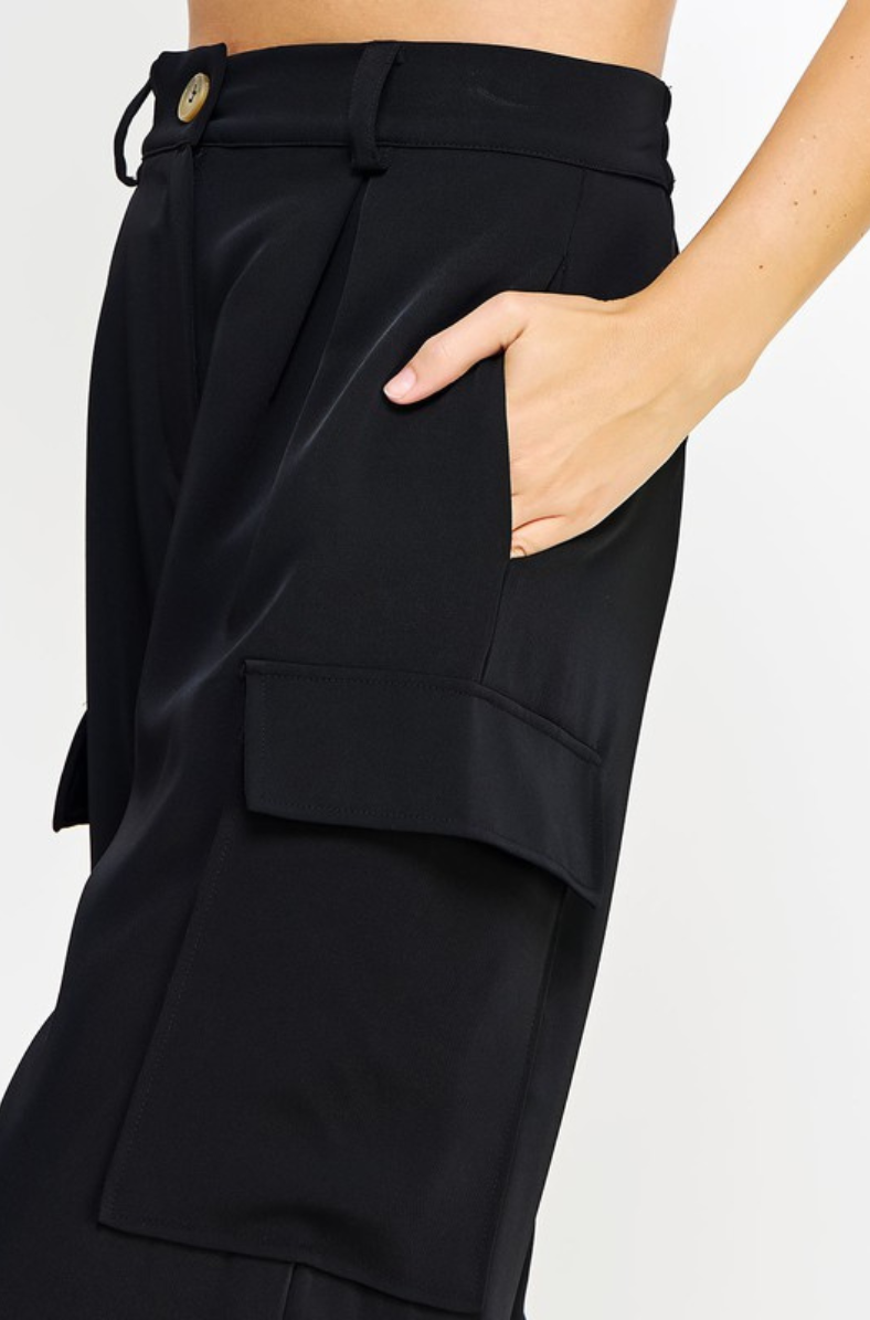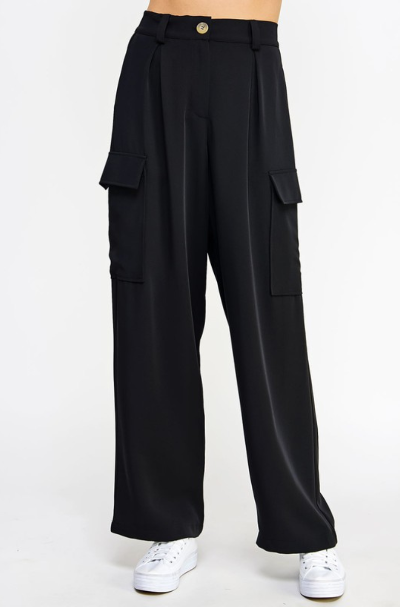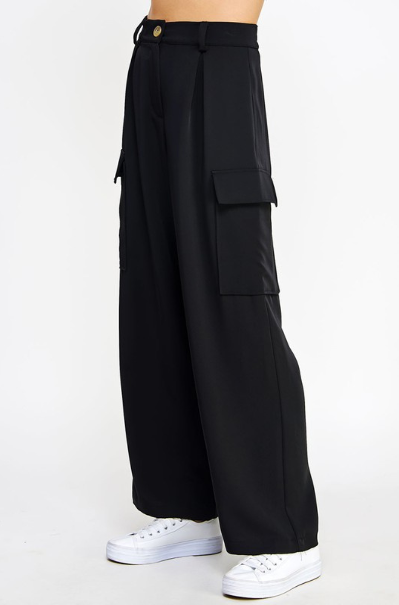 The Tailored Wide Leg Cargo Pants provide a sophisticated yet functional addition to any wardrobe. With their tailored fit and wide leg design, these pants offer a sleek silhouette while also allowing for maximum comfort and mobility. Perfect for both work and play, these pants are a must-have for any fashion-forward individual. This cargo features a button closure and pockets.